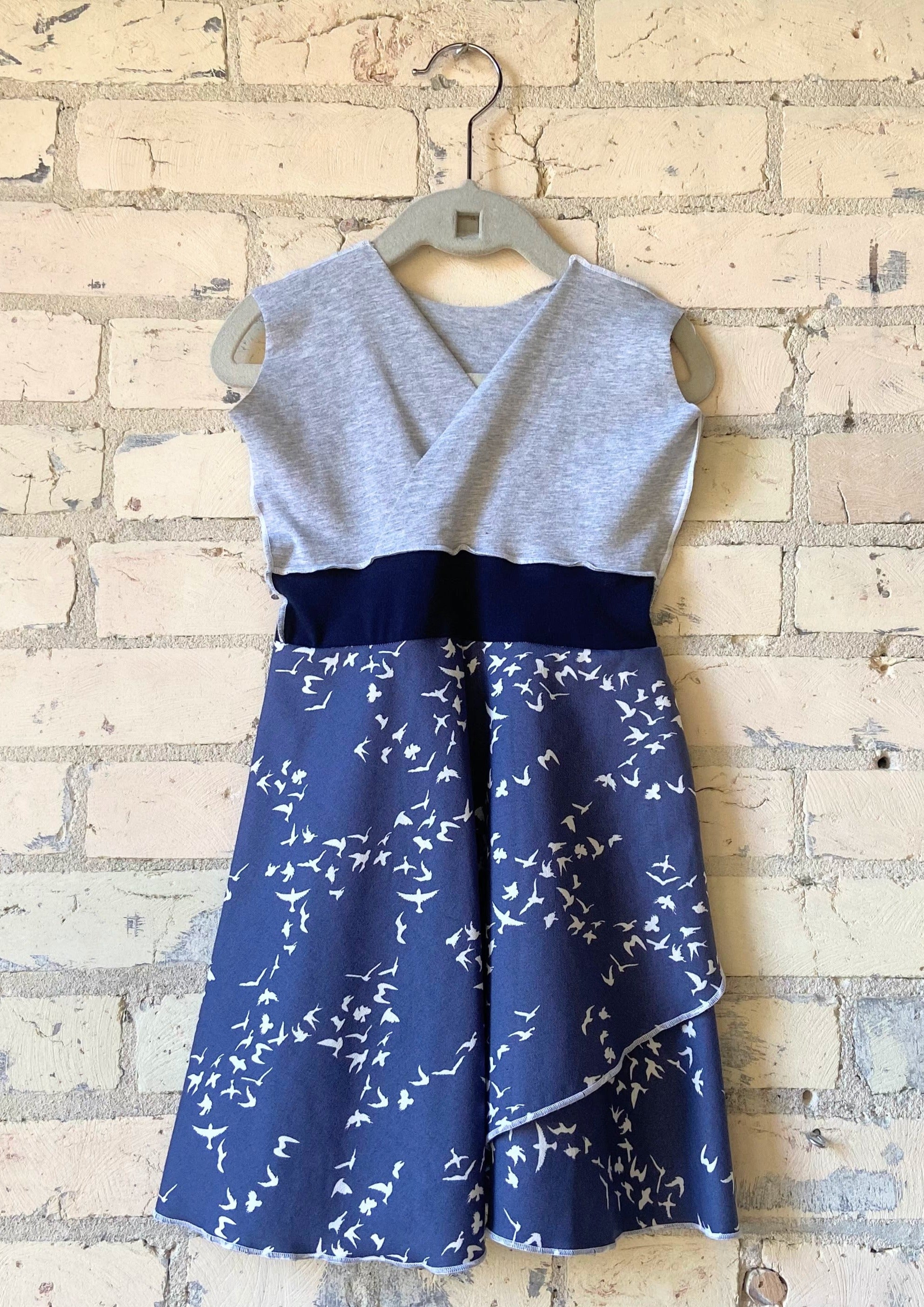 Take flight in this adorable little bird print dress! With it’s faux wrap design, this piece is simple, but adds a sweet flair.