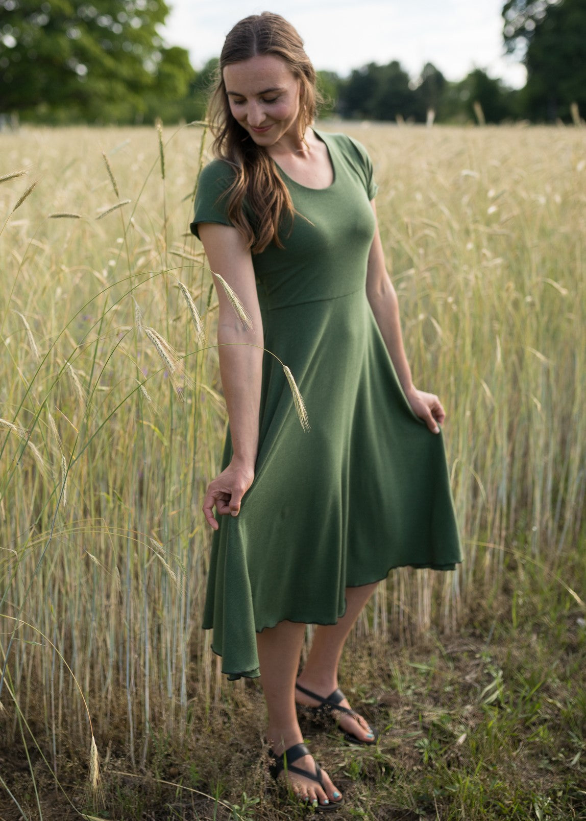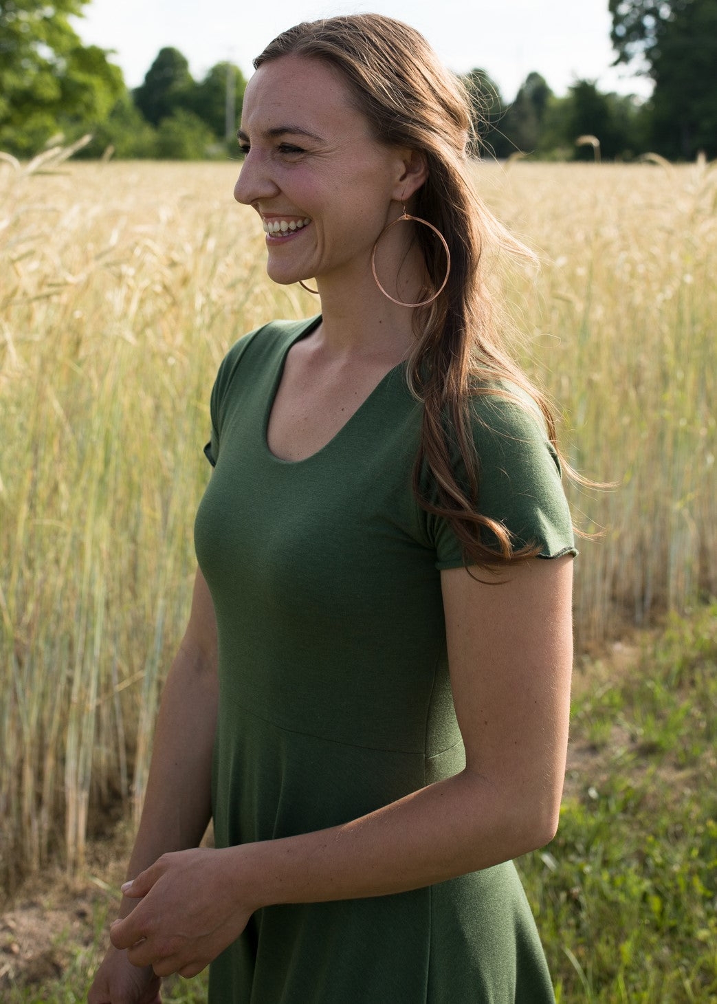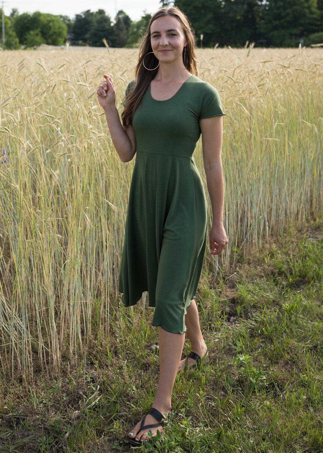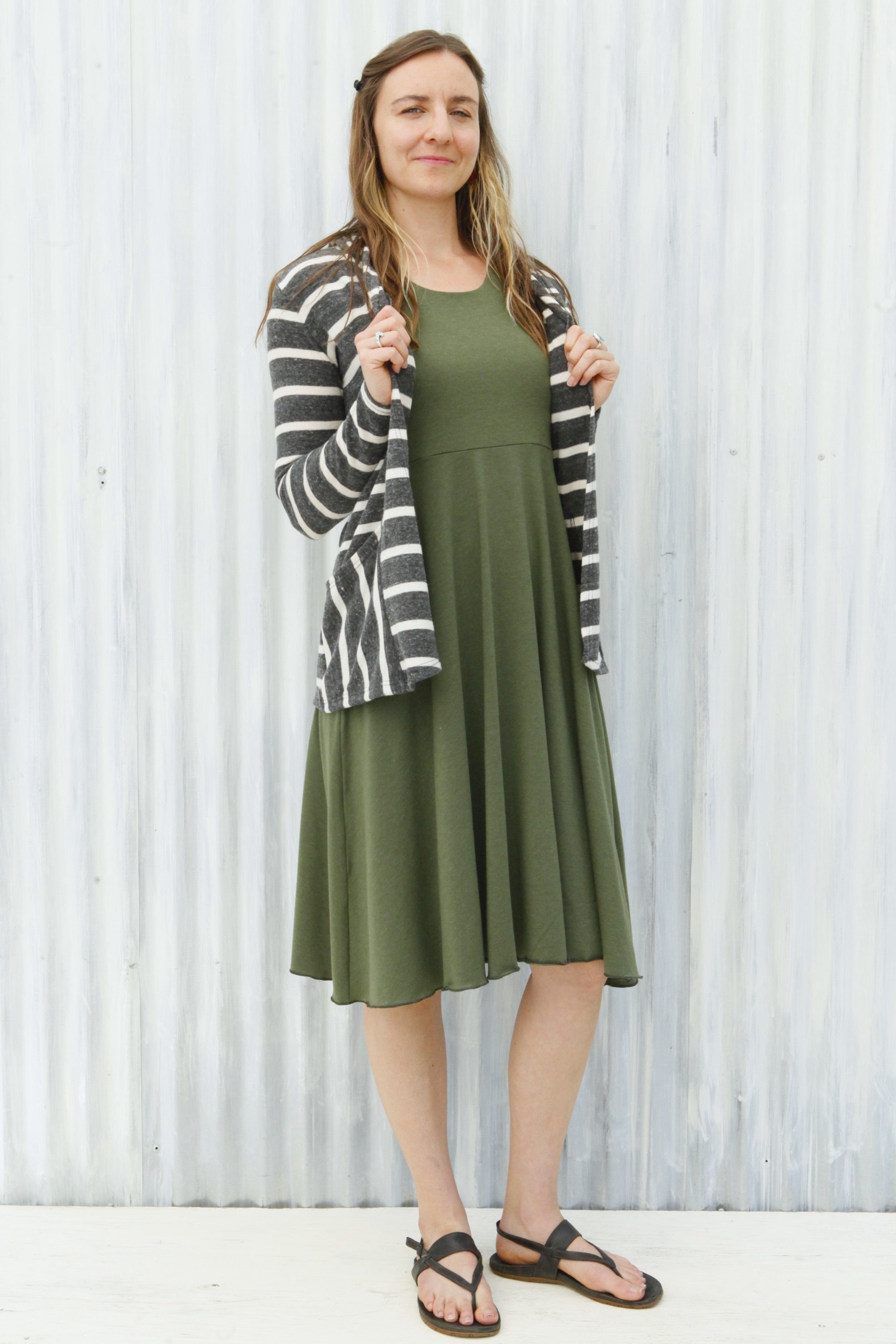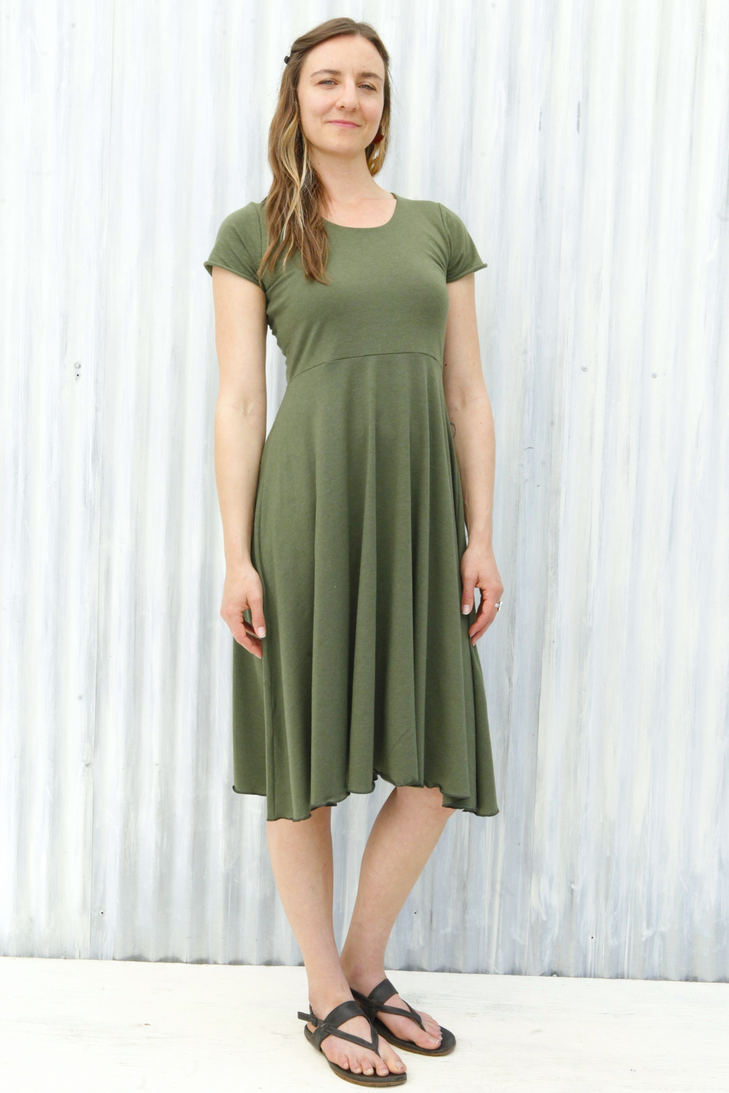 Graceful, elegant, and functional, the Green Charlotte dress is easy to slip on to wear on it’s own, or layer under and over for cooler weather. With a scoop neck and cap sleeves, this piece has a sweet, classy vibe.